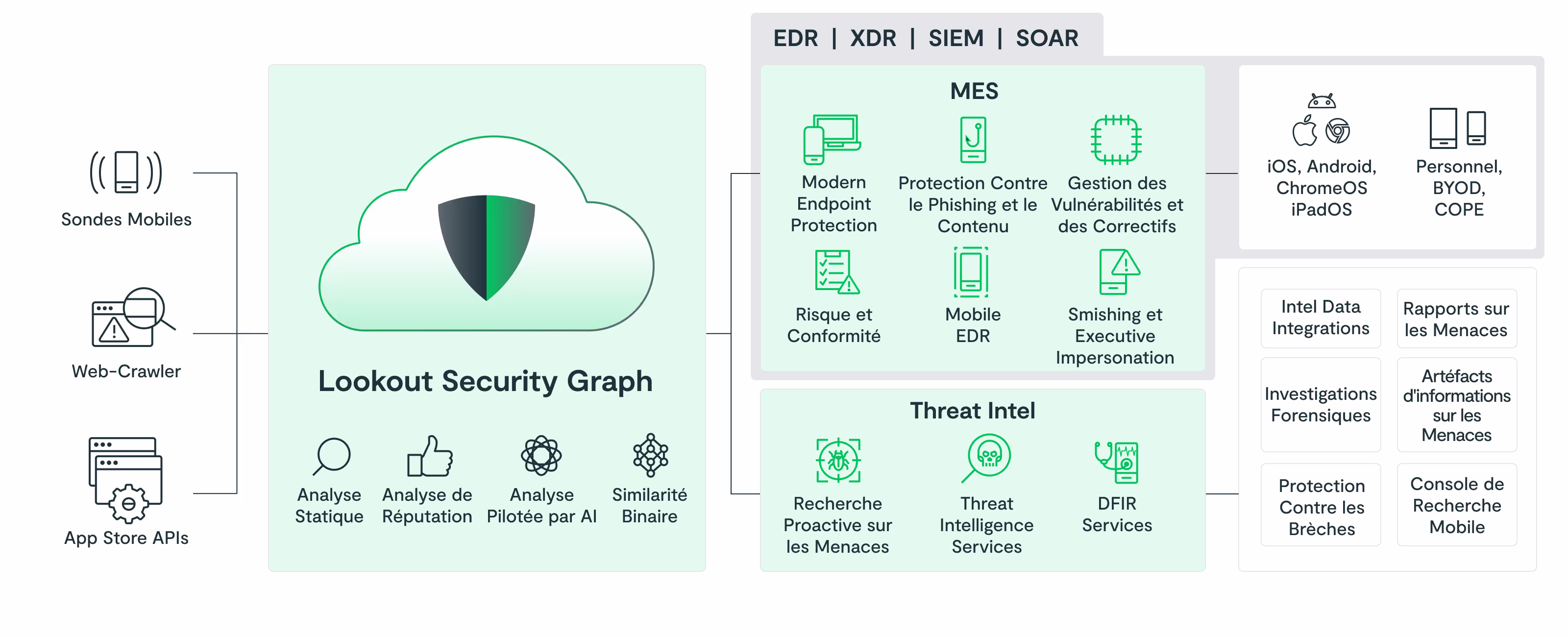 Lookout Mobile Endpoint Security (MES) proporciona una visibilidad y protección sin precedentes contra las amenazas móviles con el mayor conjunto de datos de seguridad móvil basado en IA del mundo.